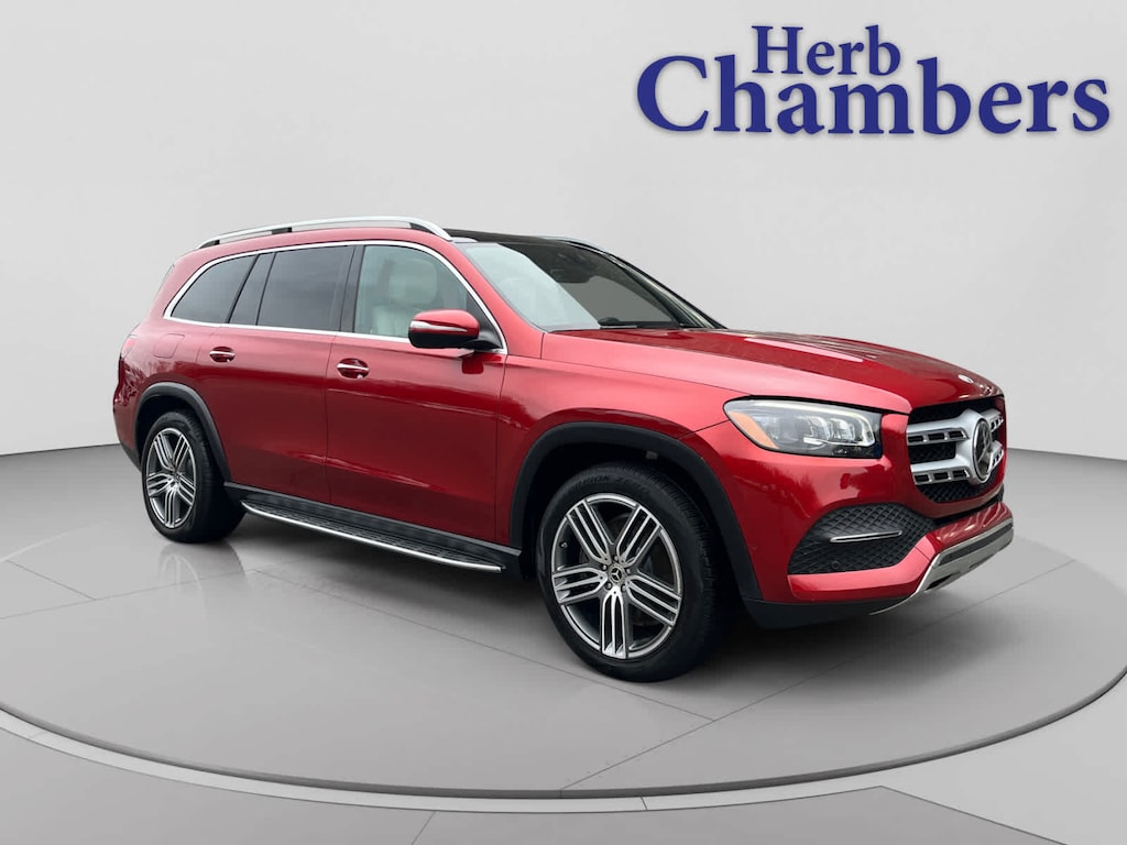 Navigation, Sunroof, Panoramic Roof, Cooled Driver Seat, Back-Up Camera, Turbocharged, Premium Sound System, Satellite Radio Third Row Seat, MP3 Player, Full-Time 4MATIC® All-Wheel, Power Liftgate, Heated Driver Seat. Mercedes-Benz GLS 450 with MANUFAKTUR Cardinal Red Metallic exterior and Macchiato Beige/Black interior features a Straight 6 Cylinder Engine with 362 HP at 5500 RPM*. CARFAX 1-Owner