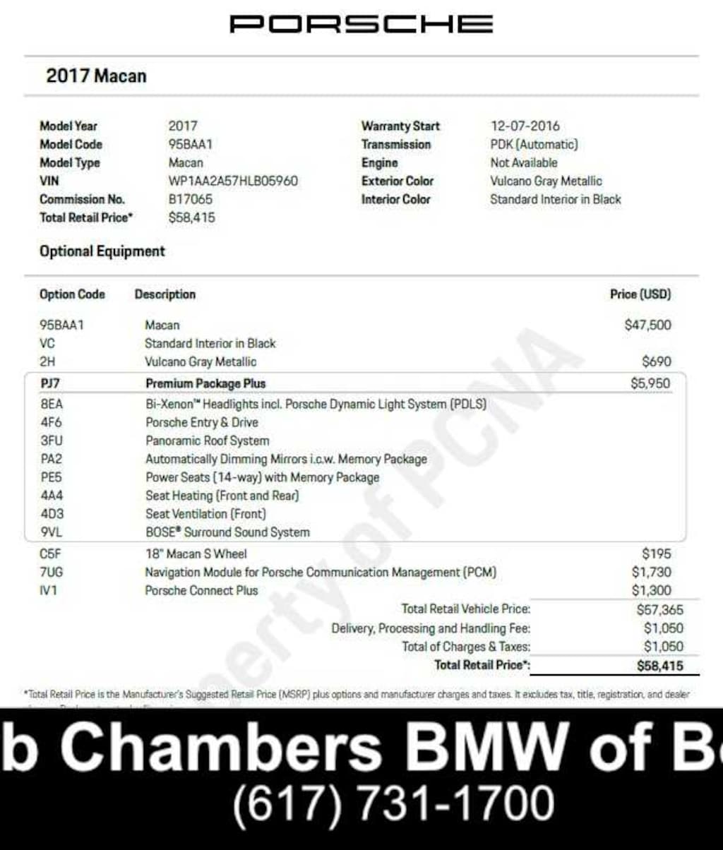 PREMIUM PACKAGE PLUS Automatically Dimming Outside Mirrors w/Memory, Automatically Dimming Inside Rearview Mirror, 14-Way Power Seats, Memory Package, driver seat, side mirror settings and courtesy lights in side mirrors, Panoramic Roof System, Front Seat Ventilation, Porsche Dynamic Light System (PDLS), Porsche Entry & Drive, Heated Front & Rear Seats, BOSE Surround Sound System, NAVIGATION MODULE FOR PCM, CONNECT PLUS.